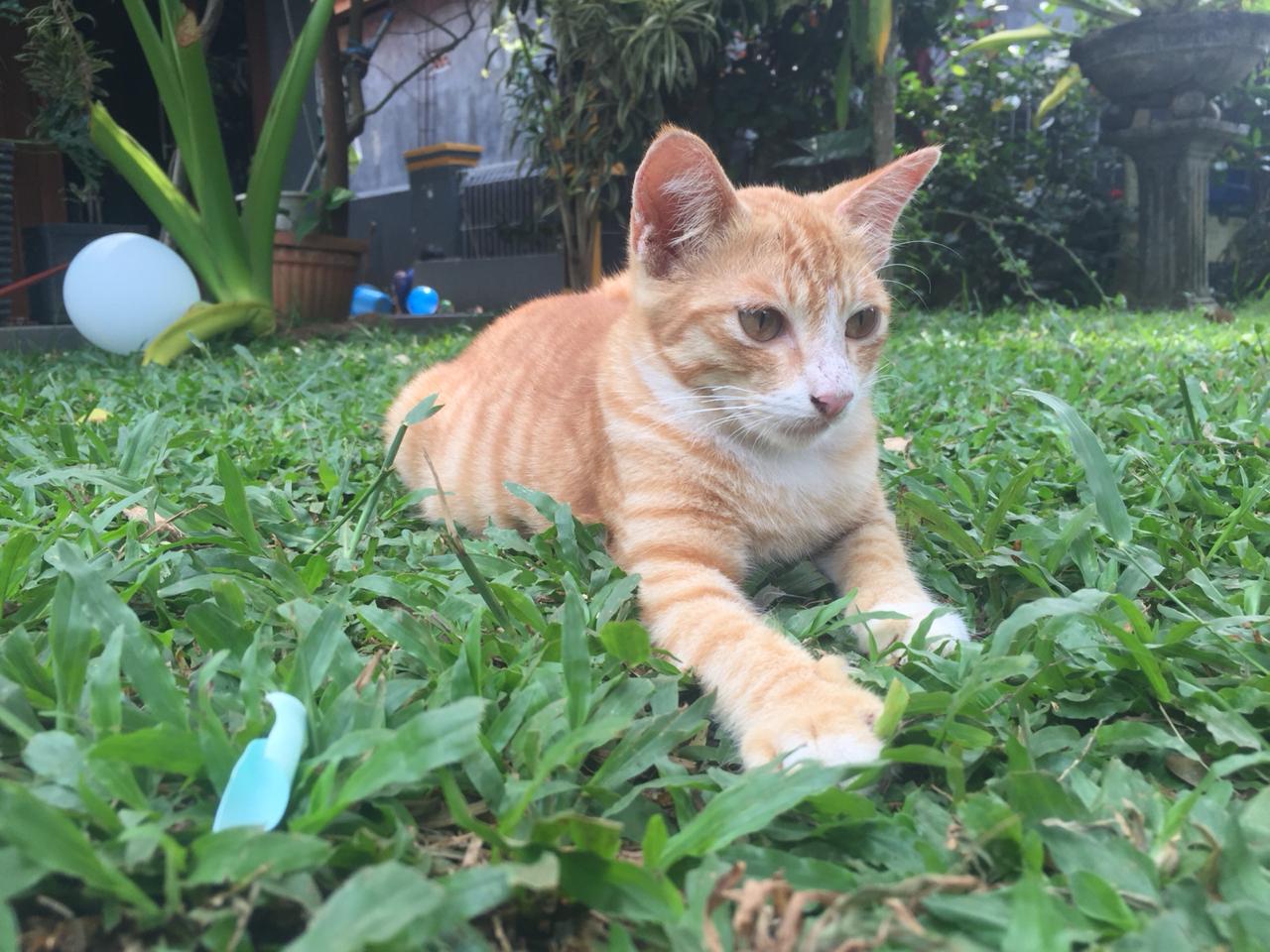 Saat ini anak-anak suka bermain dengan kucing ini dan diberi nama KuKuPih (Kucing Kuning Putih). Anak kedua yang memberi nama ini, hingga ia buatkan sendiri ‘rumah’ kucing dari kardus bekas.